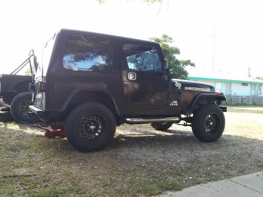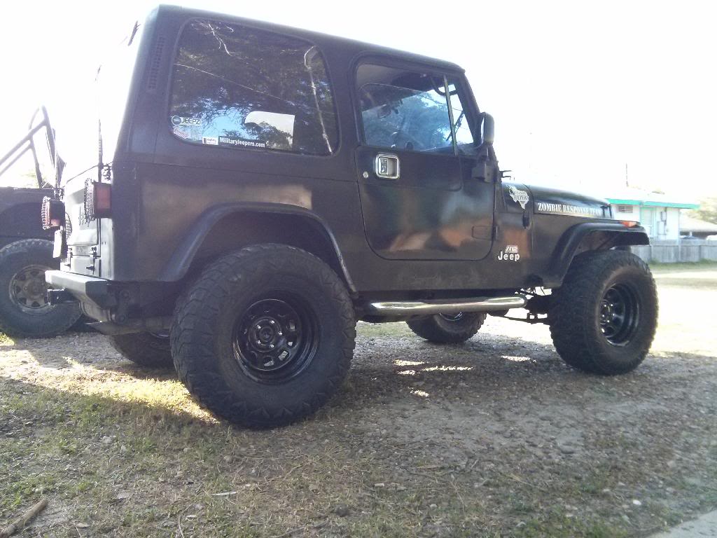 My jeep has always been the lower riding jeep of all our jeeps. I normally have regular size tires because I don't do any off leading or anything like that. I got that ome 2.5" lift a while ago and finally got some 15x8" rims to out some old 33s on till I get some money for some newer ones. The kids are very impressed now and say they really have to use the step to get in instead of just stepping in.