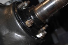 After getting the first two started, I continued to install the other three. I used a cross pattern (like installing a rim to a axle) to compress the studs. Go slow and check for miss-alignment or binding.