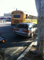 I must admit that I have ran someone over. Only faulted accident of my life, so no making fun of female drivers, boyz. We were pulling away from a stop light. He had barely crossed the intersection and stopped short. No way my vehicle could stop as quickly as his, I know. Toyota put-put car, i think :) Anyway, I reached his rear end. Interesting note, no one in the jeep felt the impact. I had attempted to swerve to the curb to avoid the collision. Instead, my front driver tire mounted his bumper as my steel bumper crushed his trunk. My only damage. Scratch to the powder coating of the bumper and one of my fog lights had the plastic cover broken. His whole rear end was mangled from me driving on it. We were going less than 10mph. I thought it was cool. I don't know what he thought. Lol. I didn't think to get pics and really wish I had.