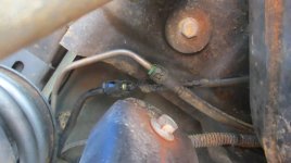 Under the Jeep, driver side, rear - looks like it's going into the gas tank. The hose that appears to have a fancy connector on it is broke in half.