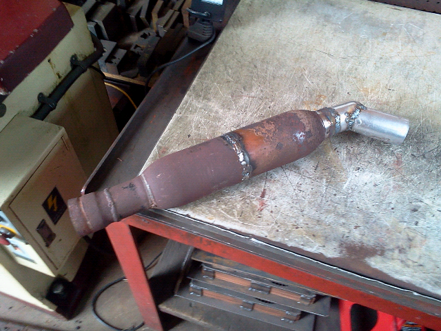 It's now 7" shorter with a turn down made from a piece of straight pipe.