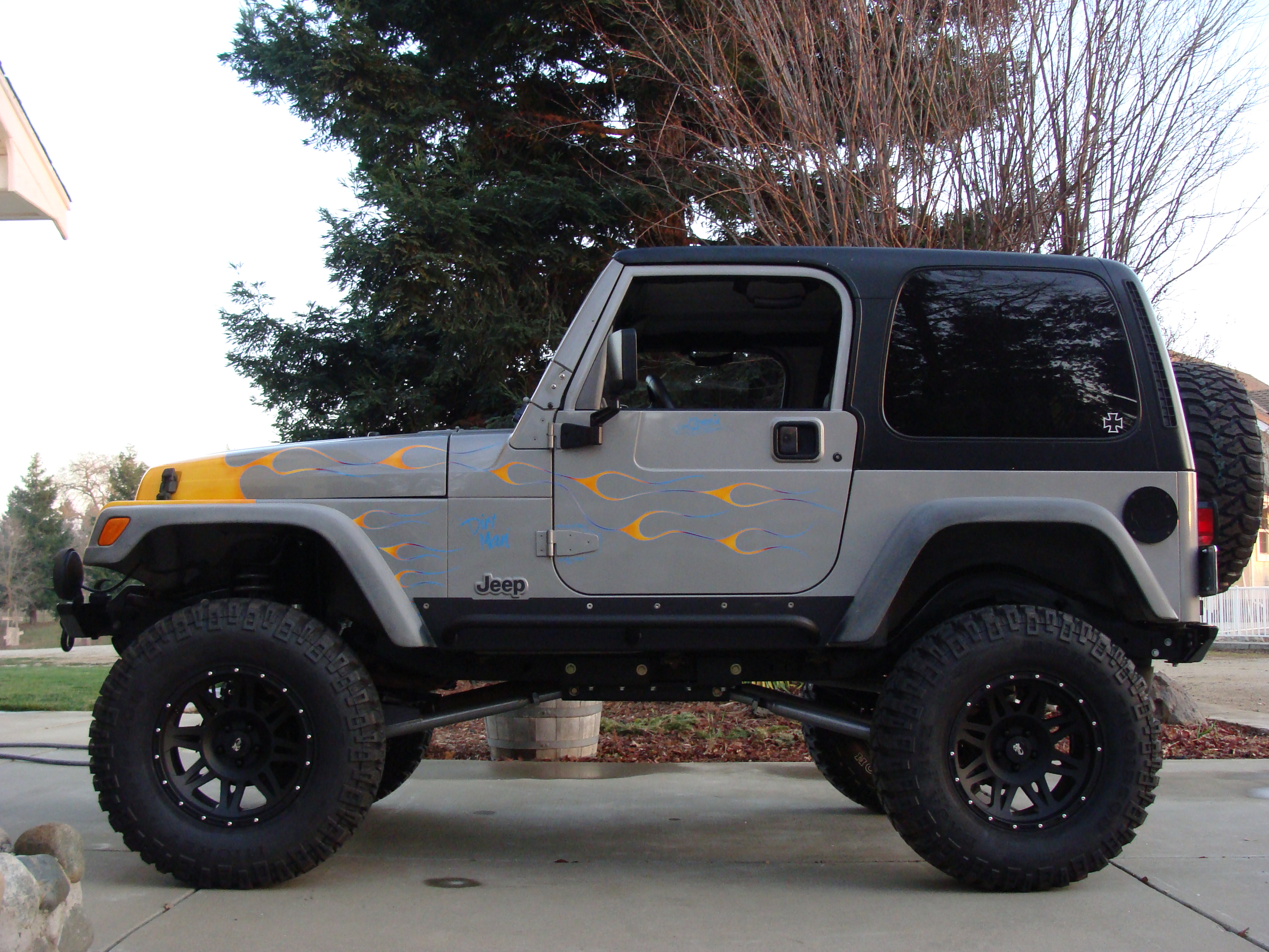 This is my 2001 TJ, I have just recently had lots of work done, which included a5.5 Rubicon Express LA Extreme Lift, Slip Elimanator, Mickey Thompson 35x12.5 Baja MTZ's, American Racing ATX 17x8 wheels, lugs and locks, Warn Rock Crawler front and rear bumpers, tire carrier, Warn fog lights, Smittybu