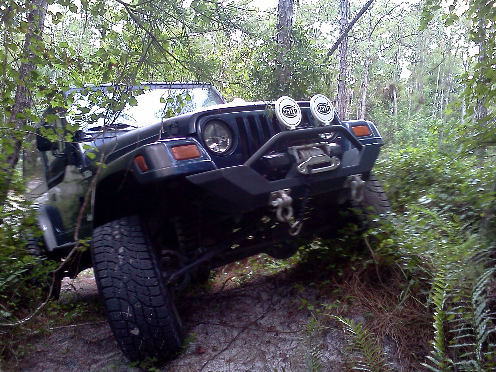 in a long trail in the woods not far from my house, i came upon a curved hill at the end of the trail, as i tryed to get over it the side of my jeep hit a tree and so i had to make a new trail.