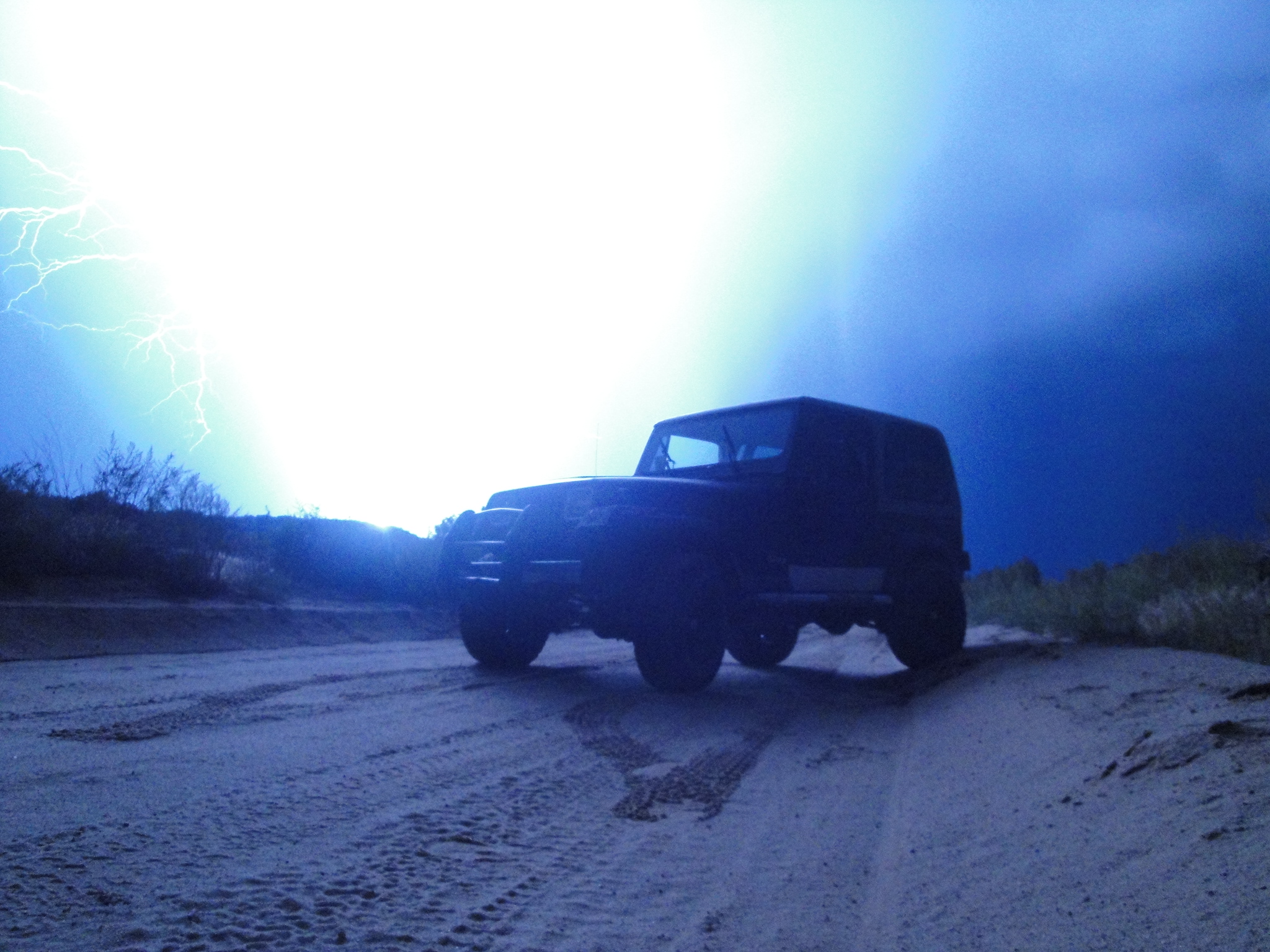 My 93 YJ at 2 AM in a lightning storm in north west NM.