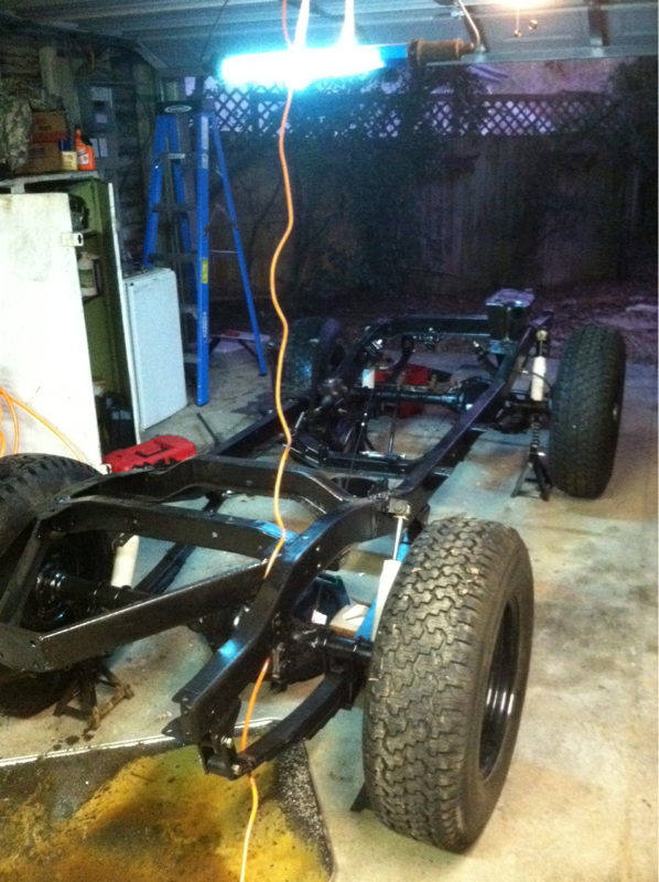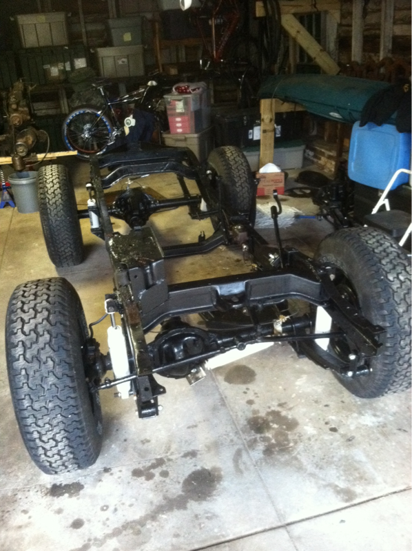 So I finally have a rolling chassis! Additionally, I installed the rubber brake hoses on the front wheel cylinders. I am struggling with the steel brake lines this weekend.