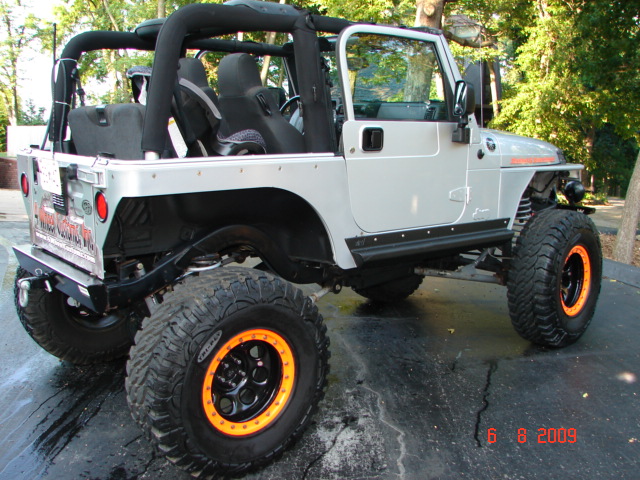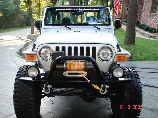 I bought the Jeep new on July 4th, 2004 just before the 05’s came out. I used the Jeep as a daily driver for about 2 years before turning it into my toy/show Jeep for my business which was around 18,000 miles... While using it as a daily driver, it had a 5.5" Rubicon Express Long Arm Kit on it and that was about the only modifications it had. The Jeep now has 22,300 miles on it. Just about everything mechanically has been upgraded/replaced to make it much stronger than stock. We did the modifications/upgrades slowly over a couple years. In Spring 2007, the jeep had around 19,000 miles on it when I decided to put a Hesco Supercharger Kit on it and a stroker kit in the motor. It makes more power than a lot of the V8 Jeeps around and sounds very mean as well. The stock motor in these Jeeps made 195 hp and this motor with the supercharger and stroker kit is making between 350-400 hp but the torque is even more impressive. The 4.0L inline 6 is known for being a good offroad engine due to the torque it makes and this one makes much more than stock. The motor was completely rebuilt at this time and all internals were replaced with upgraded parts such as a Crane Cam, Diamond Pistons, Rings, Stroker Crank, H-Beam Rods, new valves, all new bearings, and much more. This was all done by a reputable engine builder out of Oklahoma. You can literally lift the left front tire off the ground when taking off from a stop light if you wish. Running out of power while climbing a hill on or offroad simply is not an issue. While the motor is a high performance engine, it was built so it could also be driven as a daily driver around town and on the highway.