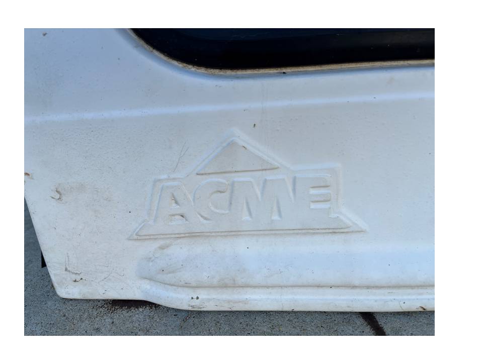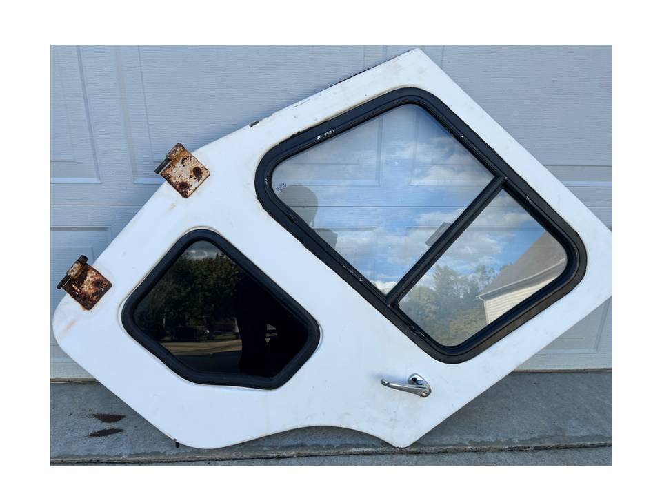 ACME CJ5 Hardtop - White - All window glass clear - window weatherstripping is in very good condition. Door seals and mounting gaskets could be used but better to be replaced. Has all 6 mounting clips (2 windshield, 4 cargo area). Some stress cracks in gel-coat and wear and tear marks and strains. No structural issues. Missing inside door handle passenger side. Passenger door handle (outside) should be re-bedded - wood screws don't hold. Drivers door pins are not correct - lower one is a bolt down through the hole...functional but... Has been stored inside since 2015. Pretty much could be used as is but otherwise I think a fairly easy restoration. Local pickup recommended. Ask questions or can provide more photos. Located Wilson, NC.