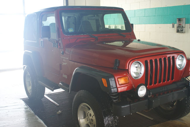 Heh nope, she came with me She'll be the theft protection, but first she has to learn how to get in and out of the Jeep by herself! At 80 lbs I can't keep picking her up to put her in...lol