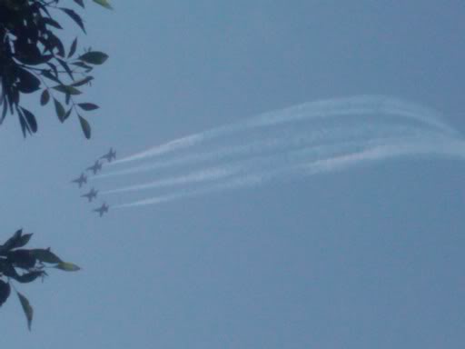 they are at my base again. i love blue angel time of year. they usually come every year or two and since i live less then a mile from the main gate, i see the whole practice and air show from my driveway. tomorrow night is the meet and greet with the pilots at the O club so drinks are cheap (if you drink) and the food is free