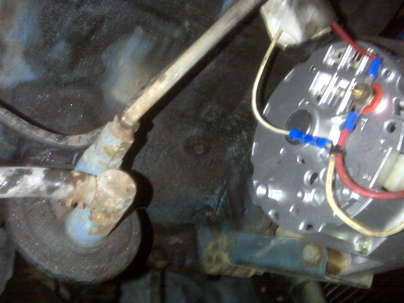 Okay. I'm bad with wiring for the most part. I can repeat what I see, but I can't come up with answers very well. But here goes. There is a two pronged plug. Two wires lead into it. One of the wires comes FROM the plug and leads TO the post on the back of the alternator. A wire also leads AWAY from said post (I believe to the battery?) This is the one that was broken. Luckily, since someone else has rewired most of this CJ5 before, MOST wires are red. Grrrrr.