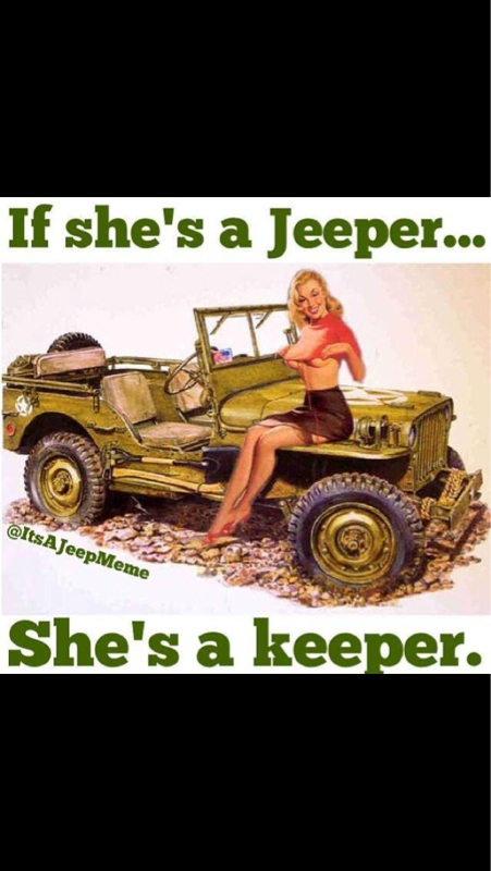 Problem here is you got to be ready to take 'em both for a drive at all times . Then there's going to be those times when either don't want to go .Well, you can't have just the jeep, because that is HER jeep. She's not sitting on a jeep that's up for grabs, like you could leave her behind and choose the jeep. It's both or none. And you'd have to ask her to borrow it if you want to take the jeep for a drive.