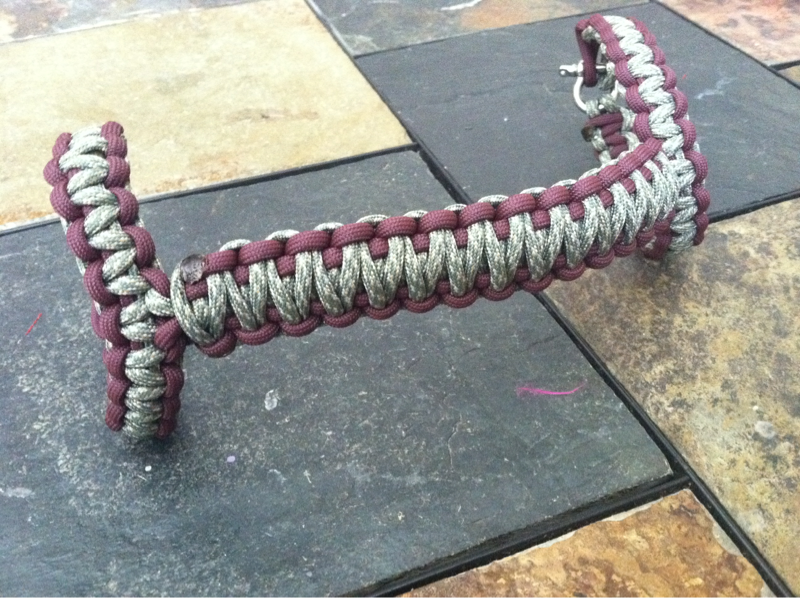 Well I don't charge much more after cost. Plus i donate a good portion of the profit. And considering the time it takes to make them I dont make much... But I can make a thinner weave one... Be about 1" wide handle instead of 1.5" like how wide bracelets are... There are a few other weave options I can think of if u don't mind having less paracord...