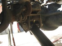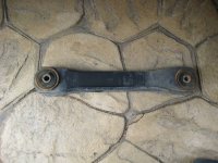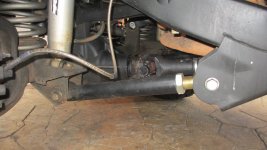 In this photo you can see the stock upper and lower control arms. We'll be unbolting the bolts on each end of the lower control arm, and just replacing it. That's it - two bolts per arm.