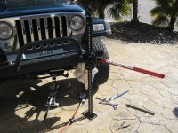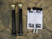 On a Jeep Wrangler there are four control arms per axle - two on the bottom (called lower control arms, or LCAs) and two on the top (called upper control arms or UCAs). These control arms connect the frame of the Jeep to the axle in a scissor style, allowing the axle to move up and down as you go over bumps, rocks, etc. On a stock Wrangler, these are simple pressed pieces of metal in a U shape and are what's know as "fixed length" meaning they can't be adjusted longer or shorter.
