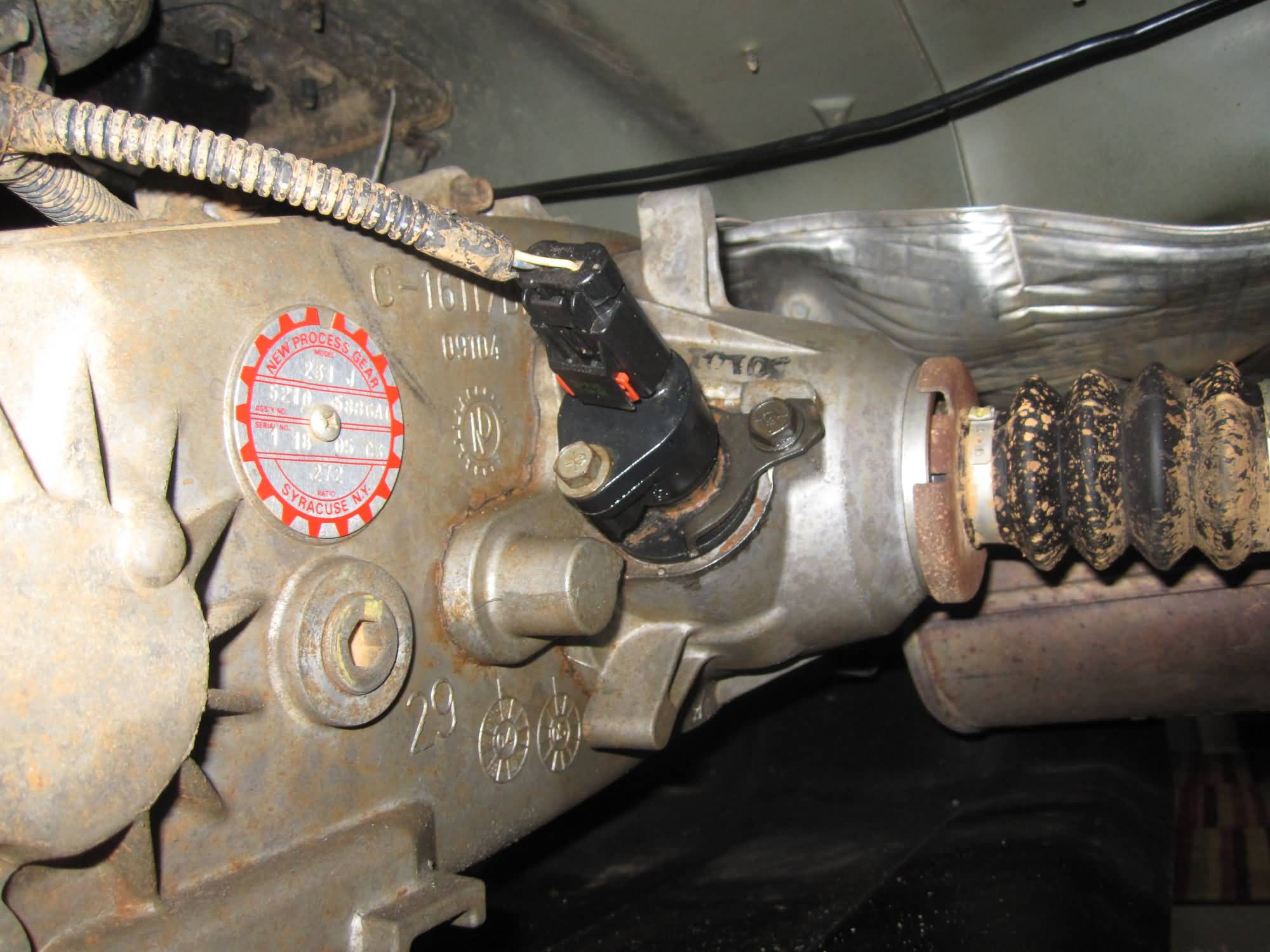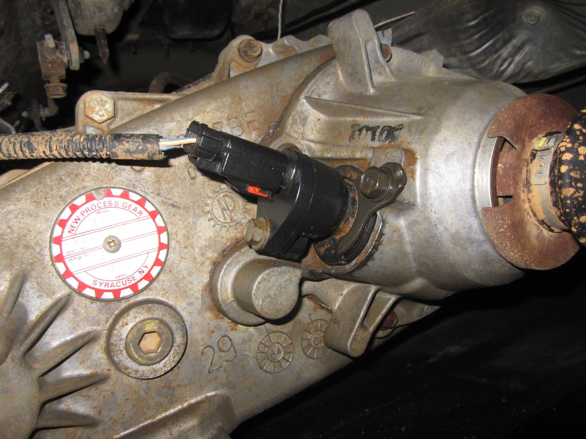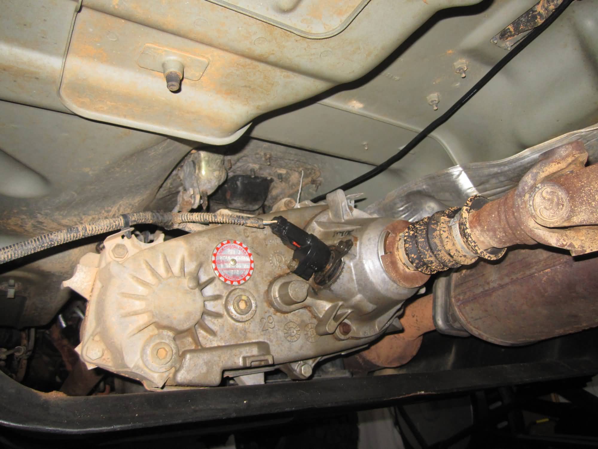 To install the new gear, first find your existing speedometer gear. It's near your rear driveshaft, where it goes into your transfer case. You'll see a wire going into it.