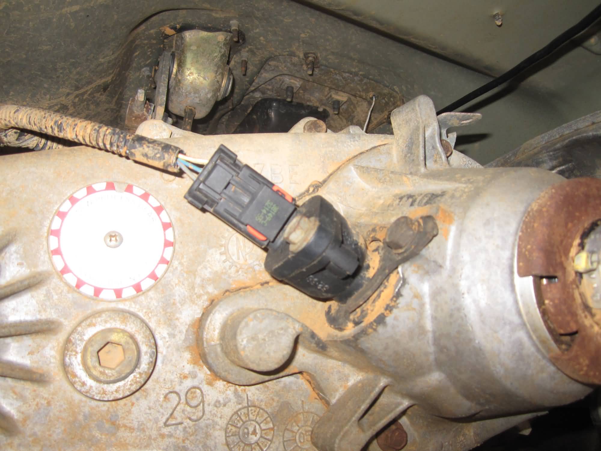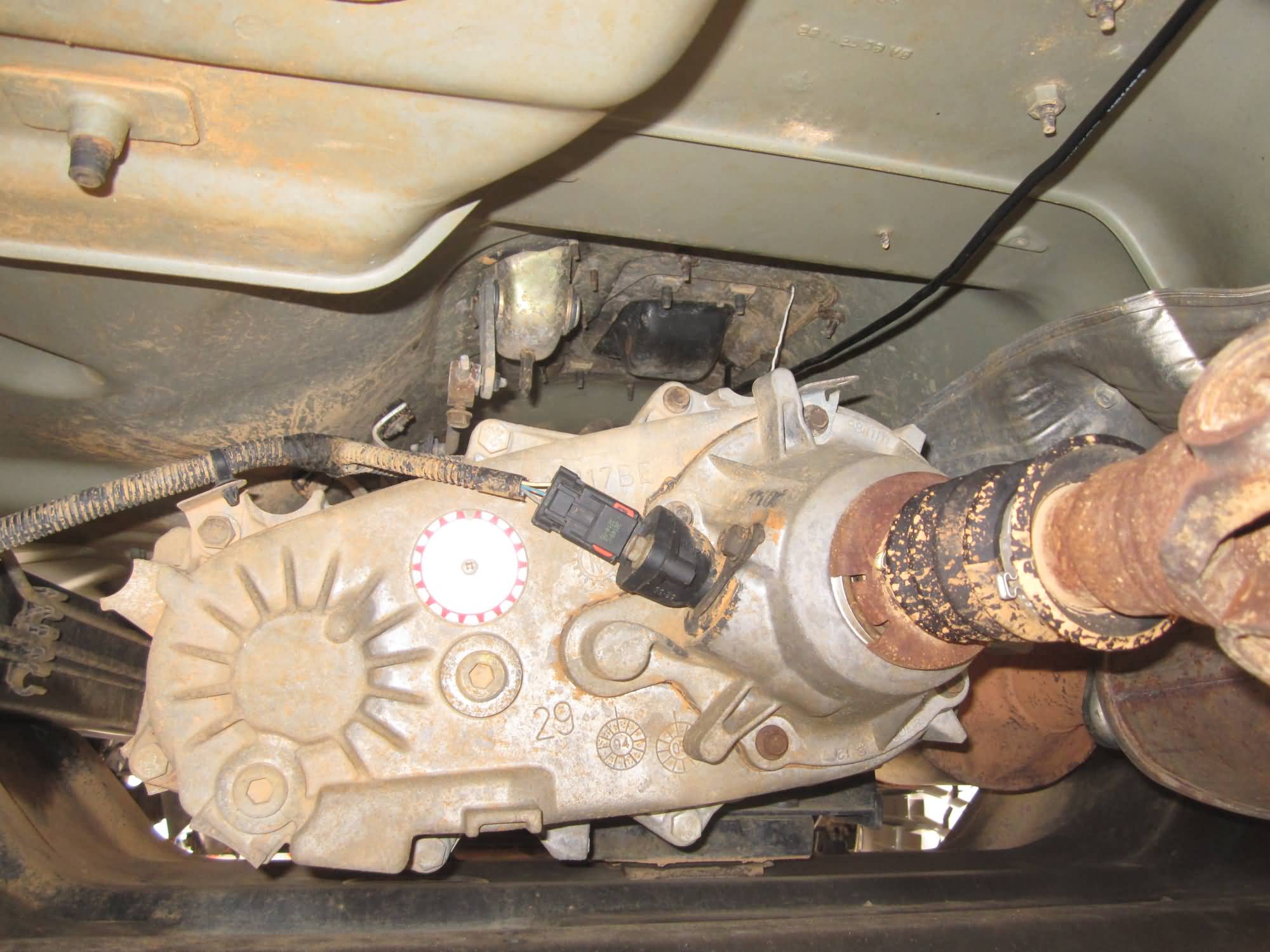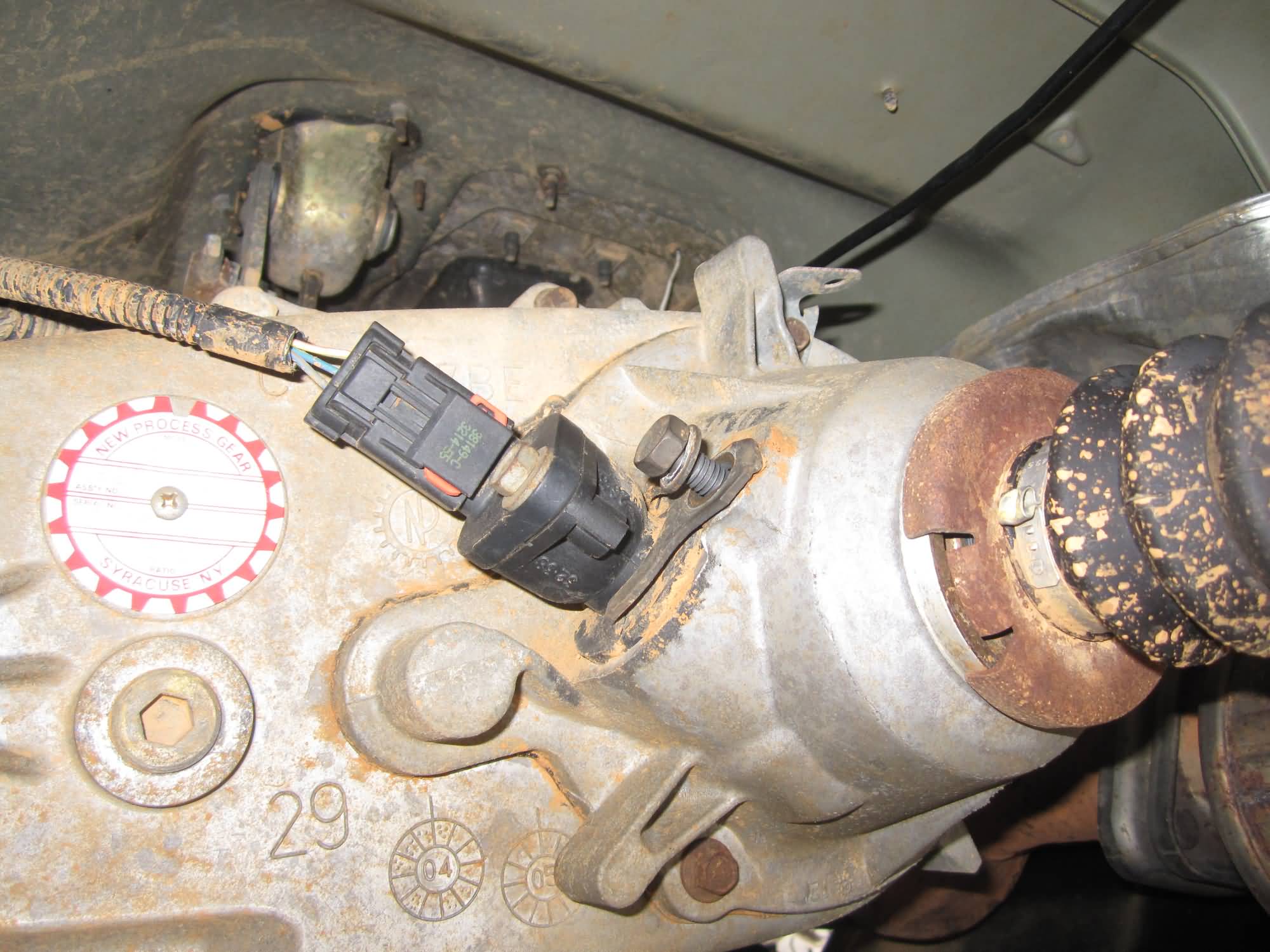 To install the new gear, first find your existing speedometer gear. It's near your rear driveshaft, where it goes into your transfer case. You'll see a wire going into it.