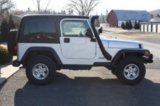 I have seen alot of good home made ones that go out the drivers side because when you go out the passengers side it goes over the hot motor and could possibly heat some of the colder air, and not getting as cold as a temp as going out the drivers side... I know a guy who just got the ARB unit for his JK with the pre filter, and that thing gets alot of stuff in it, but all he does is unscrew the top, dump the junk and go... If I were to do a snorkel I think I would do a drivers side with a Pre filter.