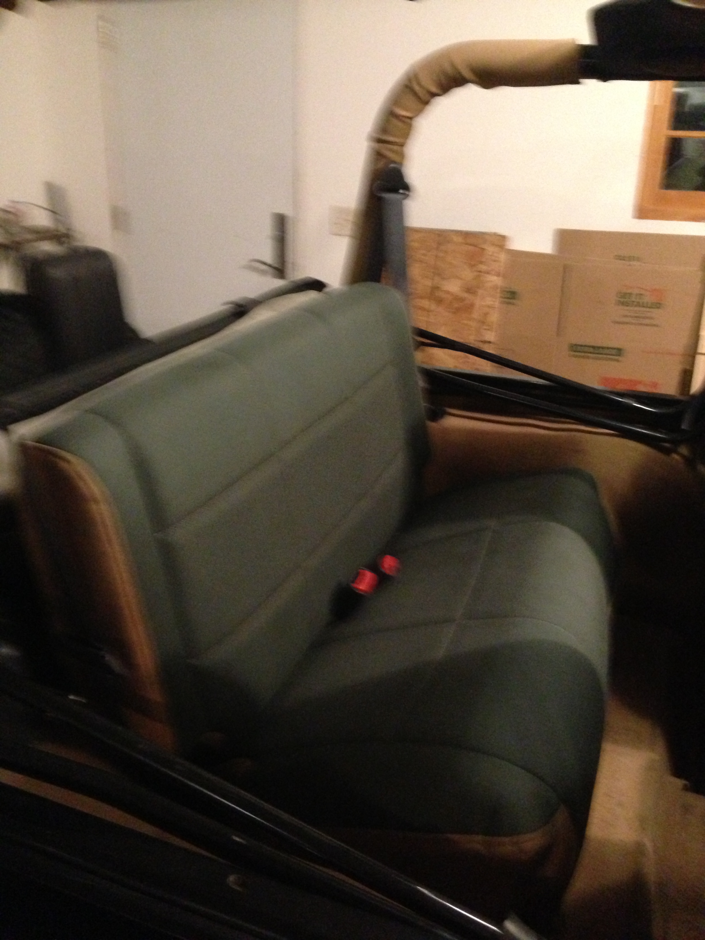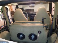 Subwoofer inside of a Jeep Wrangler rear seat