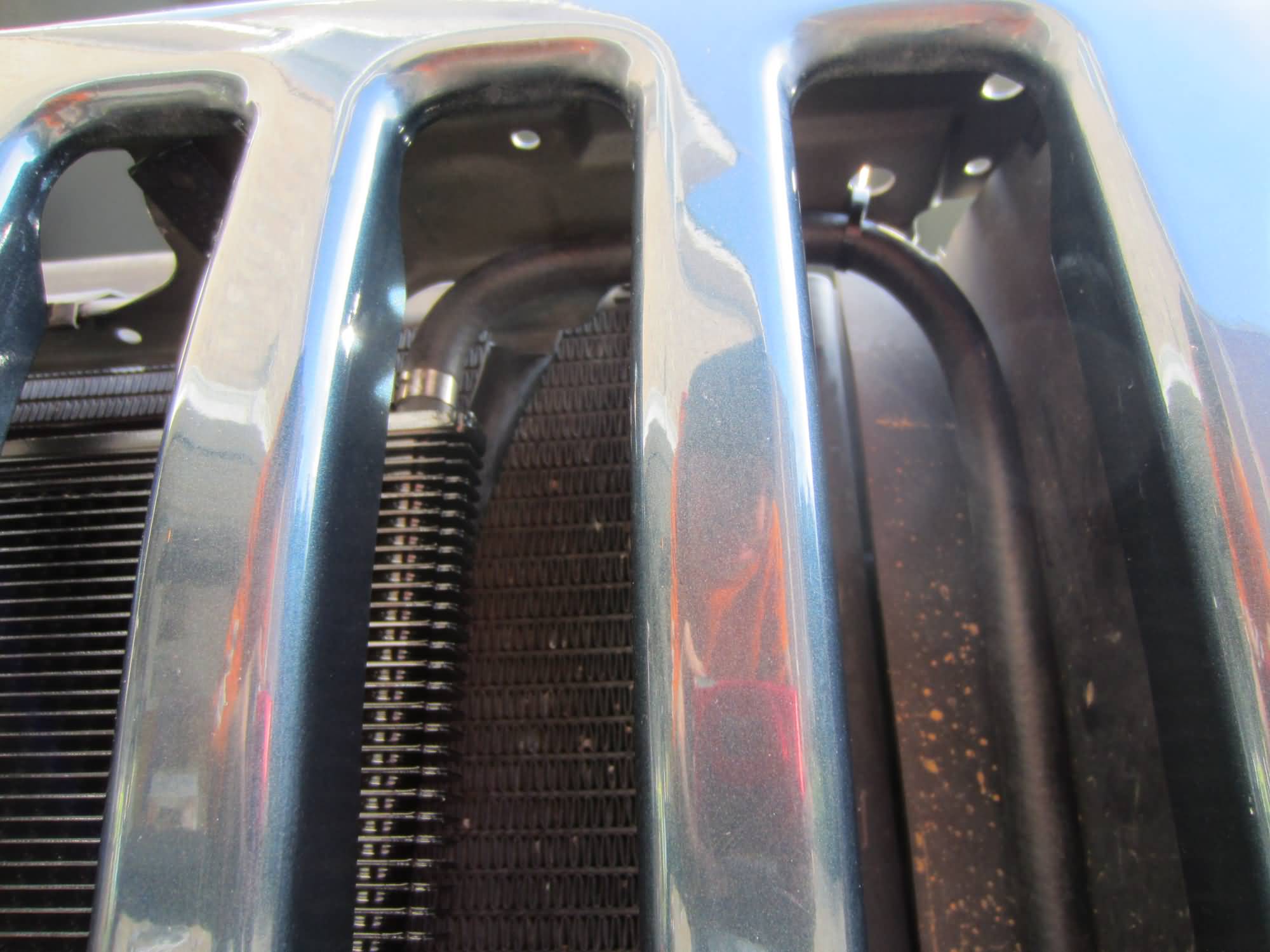 This is the stock Wrangler (TJ) radiator. Notice the two supports in a V shape – we’ll be using them to mount the transmission cooler to.