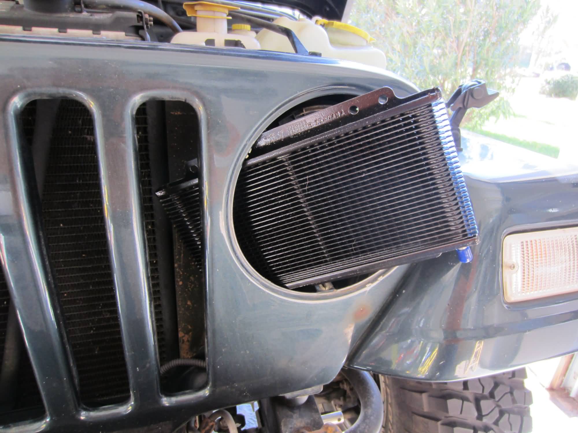 When it comes to automatic transmissions, heat is your worst enemy. Like many Wranglers with automatic transmissions, my 2005 Jeep had the transmission cooler build into the bottom of the radiator. What this means is that as I drive, the automatic transmission will build up heat – transmission fluid will carry this head through hoses to the radiator, where it runs through a small cooler. The engine fan helps force air through the cooler, cooling the transmission fluid, and bringing it back to the automatic transmission.