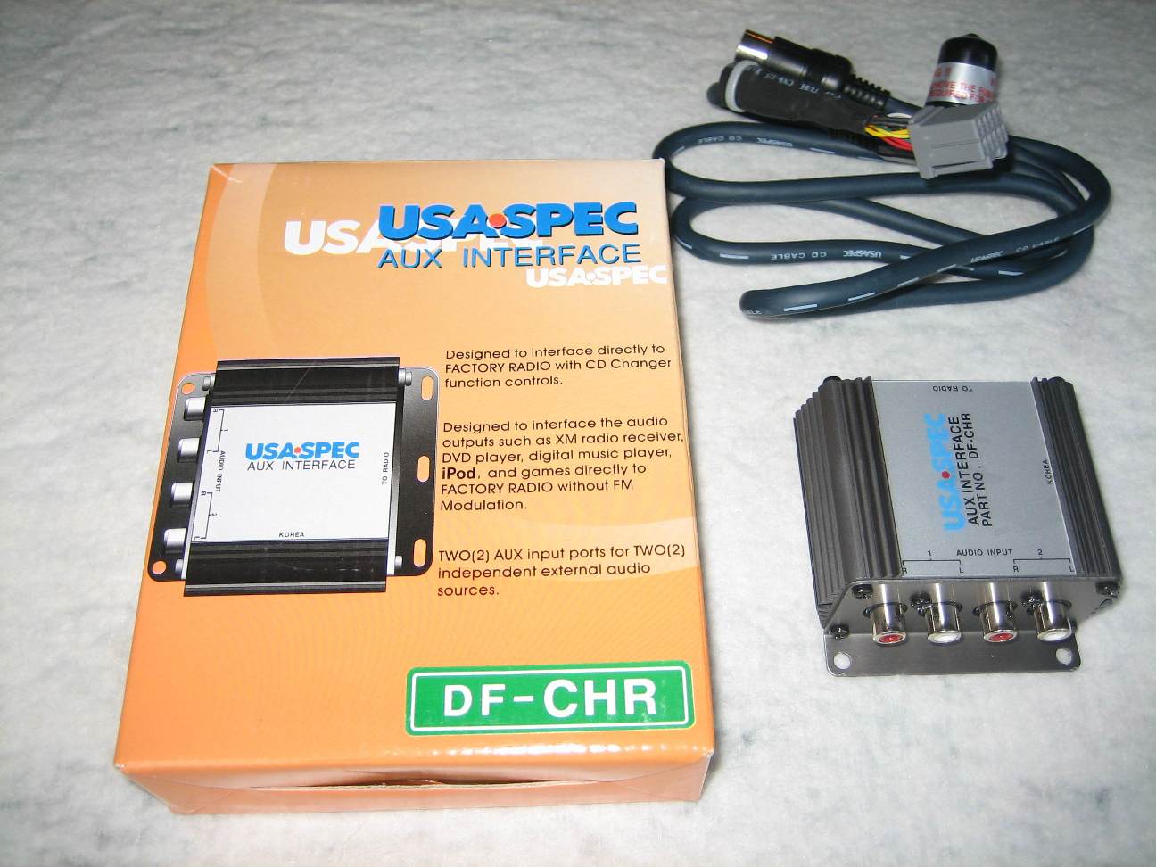 I've been pretty pleased with the factory stereo in my 2005 Wrangler. It's sufficiently loud, plays CDs, and easy to use, it did however lack one thing - an input for my (generic) Ipod. I consider my MP3 player to be pretty important (I'm addicted to books on tape), and briefly thought about replacing the stock stereo. I eventually decided to keep the stock unit, since I'll have the doors off alot I'm afraid that an aftermarket stereo would get stolen (does anyone steal car stereos any more)? So, how to add in my Ipod you ask? The answer is USASpec's aux input device (part number DF-CHR).