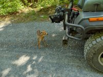todays find on second mountain, had a hard time uploading pics. Coming down second mountain I spotted this little one, took pics while watching out for mama, anouther cool day. Still had a spot of blood on its snout.