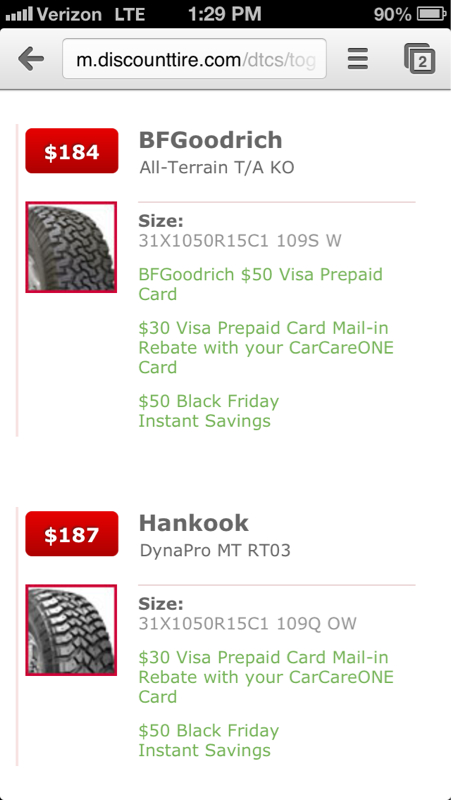 I have the same BFG's on my Wrangler. The tread works out great, but the sidewalls seem to take a beating more that what I have observed with other tires. So if you get in the rocks much, you might want a tire with a more aggressive sidewall. Otherwise, the BFG's are good tires.