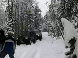 We took the lead position. We did not get far. The trail was slick underneath and the camber effect was easily felt. We got a 1/2 mile along and the Black Toyota started to slide into a line of trees at the side of the trail.